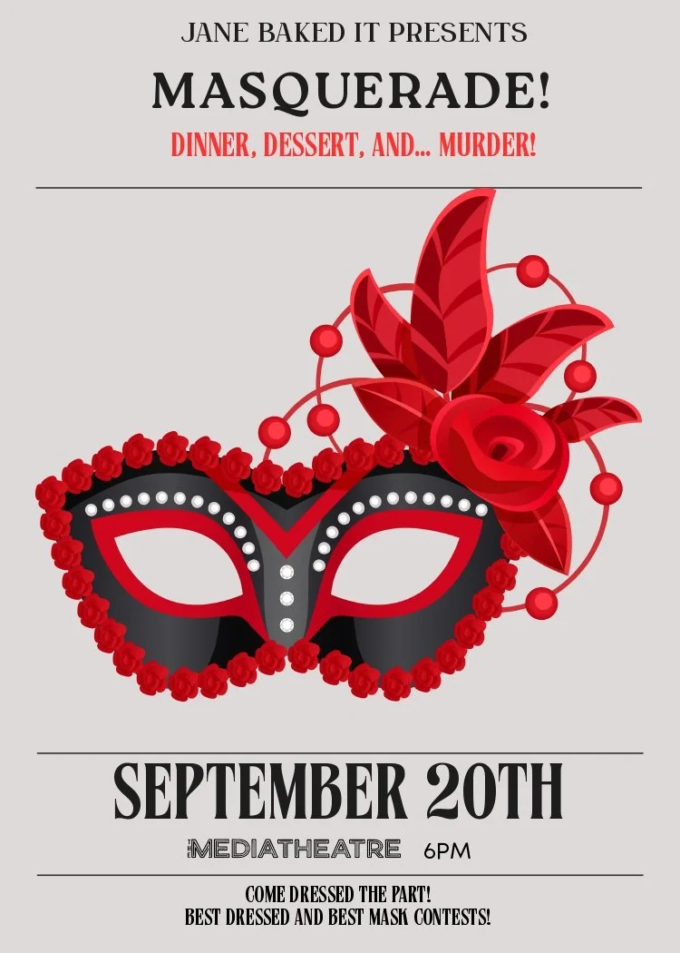 You’re cordially invited to a Jane Baked It event which promises to be an enchanting evening of mystery, masks, and mouthwatering food and sweet treats. Join us for a Masquerade Murder Mystery where secrets simmer and suspects mingle over a decadent, farm-to-table dinner. Indulge in locally sourced cuisine and signature desserts from Jane Baked It as you unravel a deliciously dark whodunit. Come dressed to impress—behind every mask lies a motive, and every guest is a potential suspect. Will you solve the mystery before dessert is served? Each guest will also receive one free cocktail!